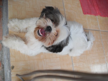 Um Lhasa Apso. Está conosco a onze anos. Muito amoroso e temperamental. Adora passear nas viagens que fazemos. Nos acompanha em todos os lugares.